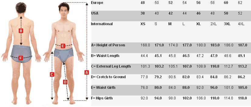 [F] Chest Girth: This measurement is taken at the fullest part of your chest (across your nipples) under the arms, closely around the body. |
