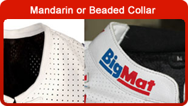 | Mandarin collar or beeded neck (leather or neoprene) |