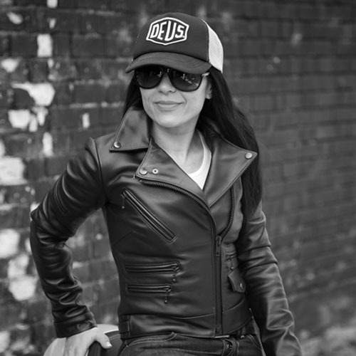 As a biker who is always on the hunt for cool gear, I was excited to hear that they had started to produce a women�s range, and when Gareth arrived with a package for me to review I was excited and slightly nervous! Getting women�s biker clothing right is tough and producing something that is functional but cool is no mean feat. So imagine my pure delight and relief when I opened the package to see a beautifully crafted, high quality sexy black leather jacket in size 6! The jacket is thick cow hide, but not over bearing, the zips are beautiful but feminine and after I slipped into it� I literally refused to take it off The attention to detail is spot on, the zips are quality and stylish and there are seven pockets, all of them functional and packaged up with a lovely quilted lining. The design is based on a classic motorbike jacket with a custom twist, and all handmade in London. Unlike most biker jackets, the waist also fits perfectly � the Black Skulls seem to really understand a woman�s proportions and how a jacket hugs you when you�re riding! Actually it was down to shed loads of testing and their pattern designer Joseph Nigoghossian. It feels luxurious and snug but your not dragged down by the weight. It�s definitely the kind of jacket you can cruise around in and then wear it out on a night on the lash!
